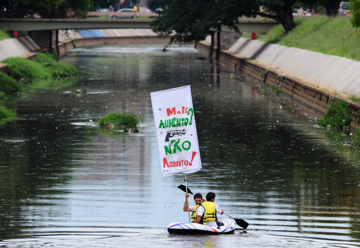 Estudantes fizeram manifestação contra o aumento em frente à sede da EPTC, na Avenida Ipiranga. Carregando um faixa com a frase "Mais aumento, não aguento", dois jovens percorreram o Arroio Dilúvio em um bote de plástico para protestar contra o aumento da tarifa dos ônibus. Amanhã, os estudantes irão fazer uma caminhada até a prefeitura.